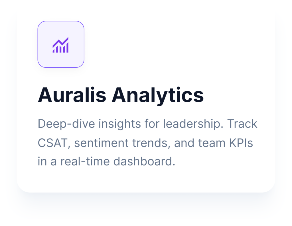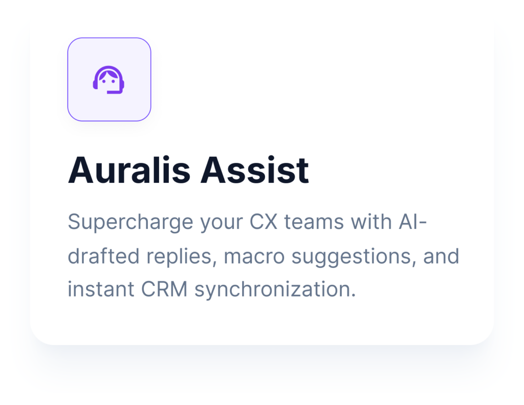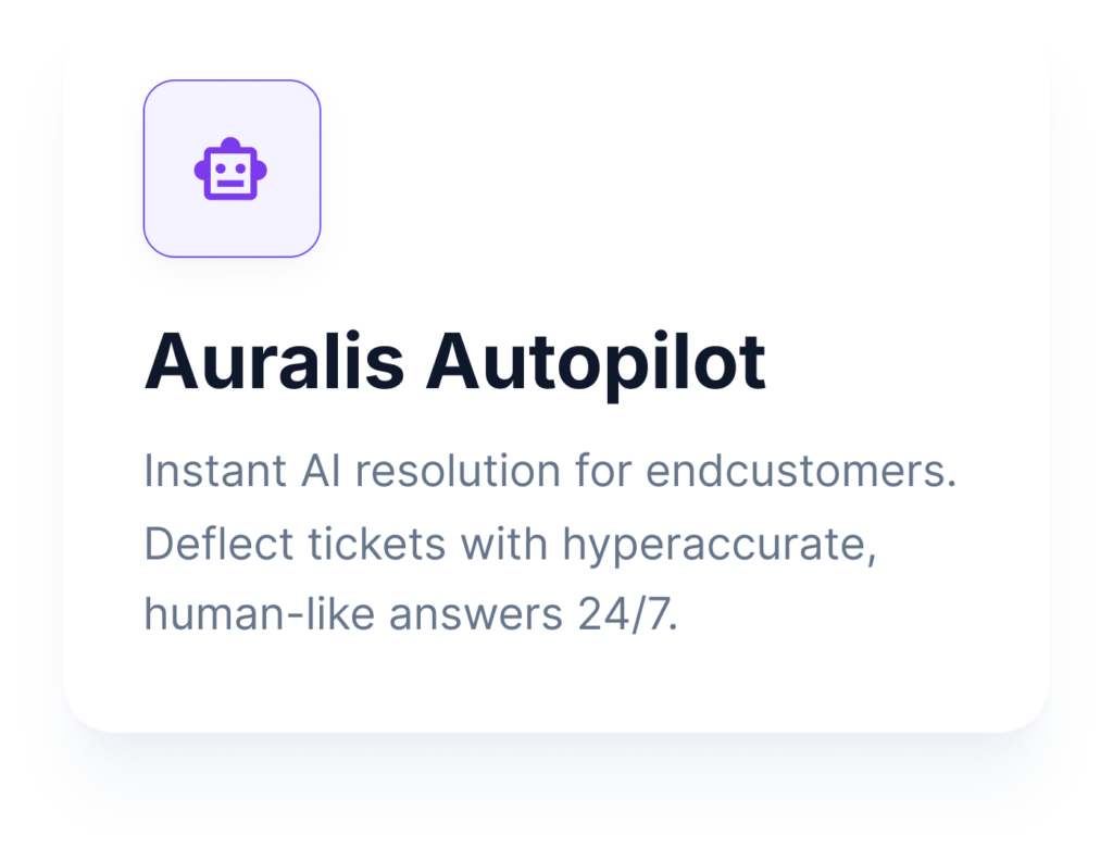 Auralis is more than a text-based chatbot — our AI Agents for support teams act as intelligent assistants that integrate into your operations and continuously improve as they learn from your business..