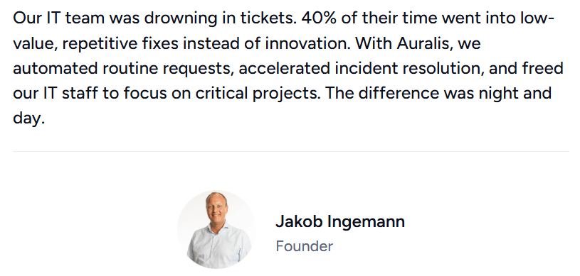 With Auralis, they automated routine requests, accelerated ticket resolution, and gained real-time visibility into support operations. The result was leaner workflows, faster response times, and a team freed to focus on strategic initiatives.