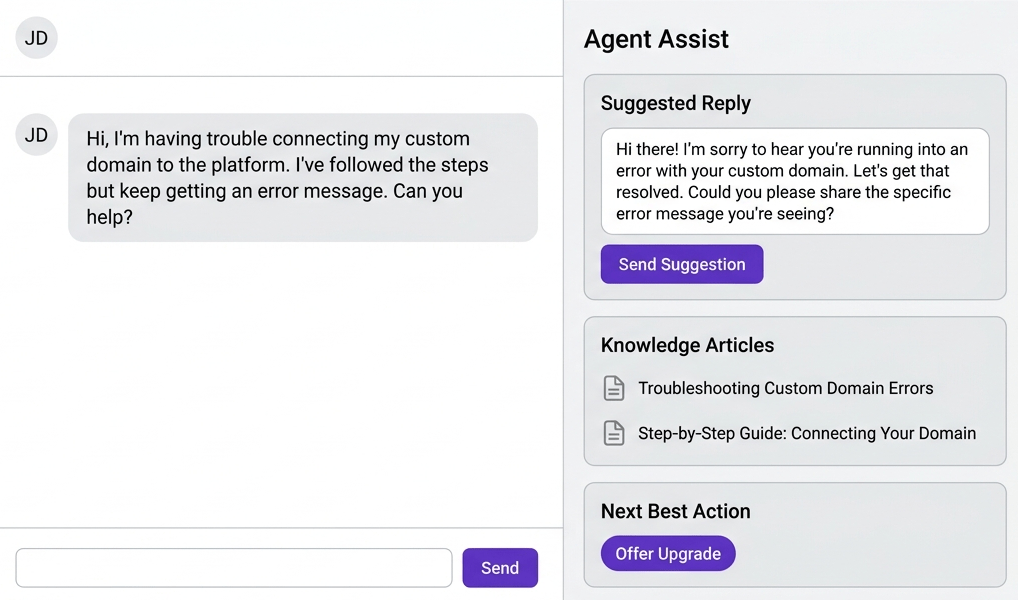 Automatically classifies and categorizes incoming customer conversations based on their intent, sentiment, and language. This ensures every ticket reaches the right team instantly, reducing average handle time and eliminating costly misrouting errors across high-volume support queues.